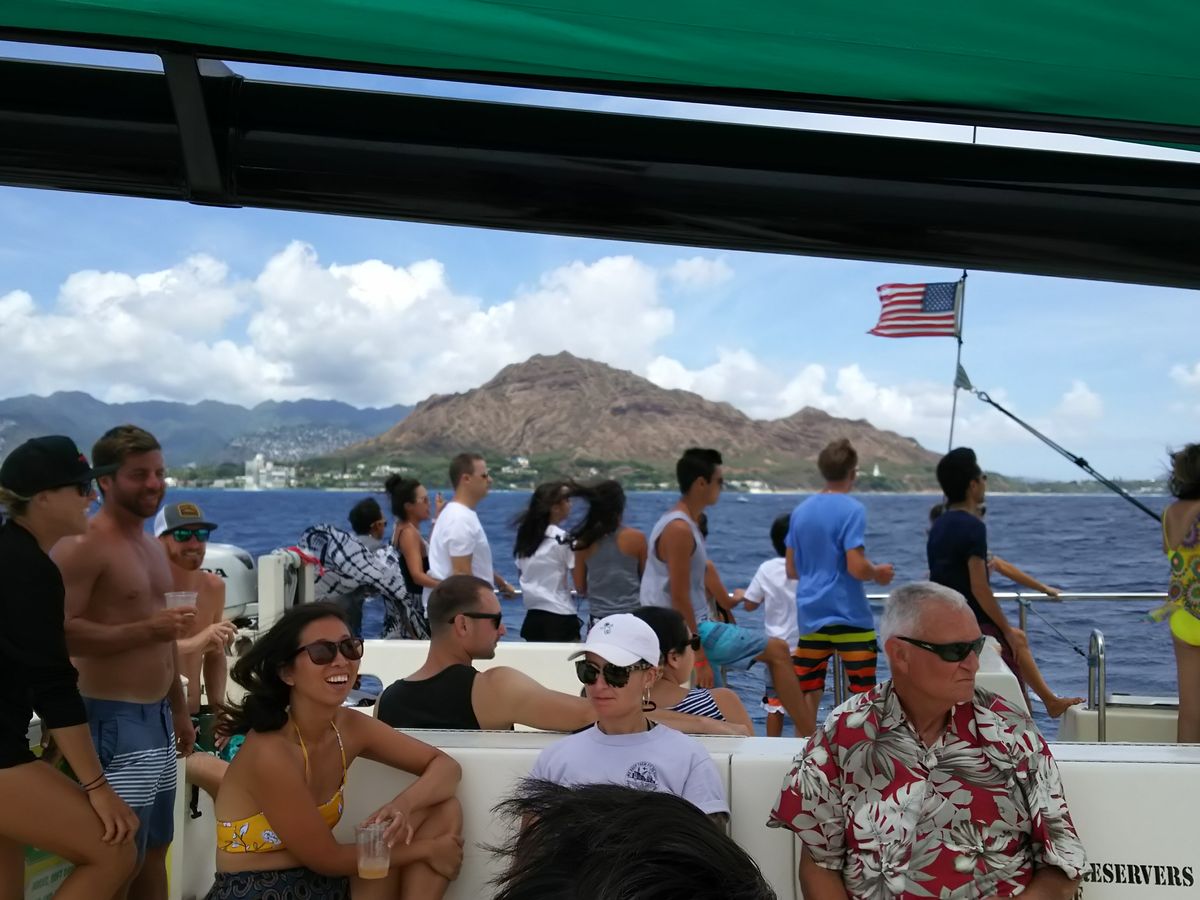 We were swept up in the excitement of the international guests, and it was incredibly fun. Of course, the sunset was beautiful, and the view of Diamond Head from the sea was fantastic.