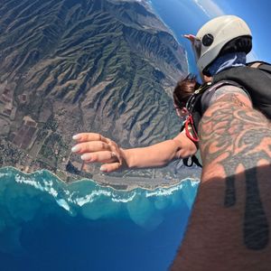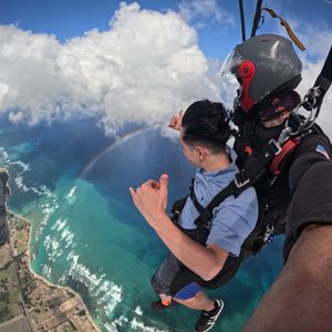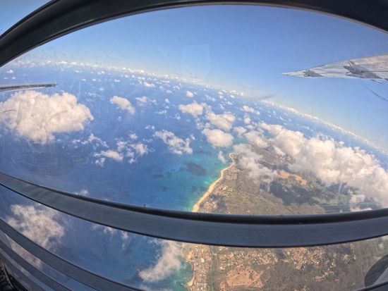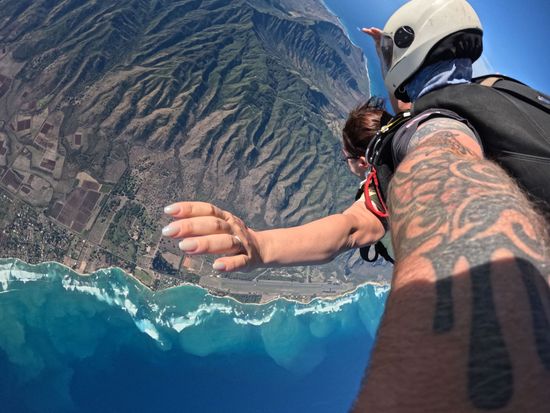 インストラクターとペアで、セスナに乗り込みダイビング!景色は飛行機の小窓からみる景色と同じで雲の上。次々と飛び立ちあっという間に自分の出番!高すぎてこれからダイビングをする実感がないまま一瞬で飛びました。一気に急降下し、手と足を広げてダイビングのあの形に。急降下してても景色を見る余裕は全然ありました。しばらくするとパラシュートが開き、緩やかに下降。山の上、海の上を堪能。日本ではやらないですが、ハワイだからこそやる勇気が出たダイビング。直前まで不安でいっぱいでしたが、やってよかったです。