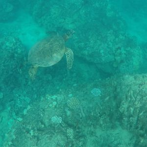 イルカ鑑賞後のシュノーケリングでもカメや魚を見れて楽しかったです。天気のせいかやや透明度は低かったですが、とても感動的でした。
