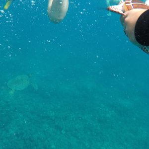 The snorkeling after dolphin watching was also fun, as we got to see turtles and fish. The visibility was somewhat low, possibly due to the weather, but it was very moving.