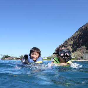 This was my first time in Hawaii in September, and I didn't expect it to be so hot, but the temperature was just right for swimming. However, if you're feeling uncertain, it might be a good idea to rent a wetsuit. By the way, my mother and my son and daughter rented one. You must wear a life jacket, which also increases buoyancy, so I recommend it for those who are not confident swimmers.