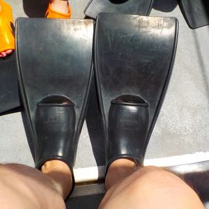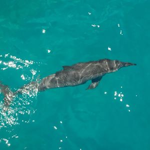 Once you spot a dolphin, you need to jump into the sea immediately and swim hard, or the dolphins will swim away. You'll be kicking with your fins until your legs are sore.