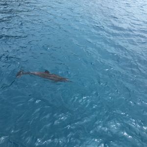 そこから船でイルカのいる場所まで移動。最初の二回はイルカは見えず、会えるかどうか不安でしたが無事に水中を泳ぐ姿が見れました!