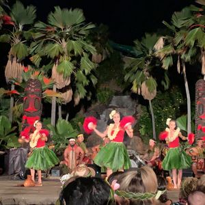 We went in late February. Since we went as a family, we all wore matching aloha shirts, and the women wore aloha dresses. However, everything from meals to shows was outdoors, so even in Hawaii, it was cold in February. We needed jackets, like hoodies or jumpers.