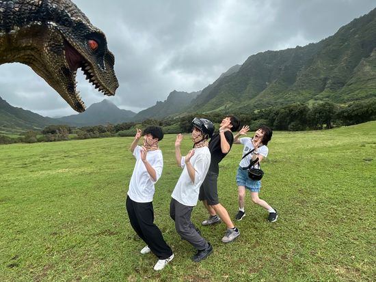 I had never gone horseback riding before and was very anxious because I couldn't speak English. However, once I arrived at Kualoa Ranch, I had no trouble with English at all! When I went, the weather was bad and it was drizzling. I had brought a raincoat that I bought at a 100 yen store, but before riding, I found that there were helmets (which are mandatory) and raincoats (available for anyone who wanted to borrow one), so I borrowed one of those! I got caught in a downpour and my pants got completely soaked, but thanks to the raincoat, my upper clothes stayed completely dry.