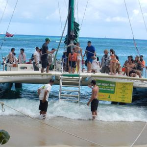 This is my fourth time in Hawaii, and I've used this service three times. I recommend it for the afternoon of the first day. It's a large catamaran, so there's not much rocking, which makes it安心 (safe).