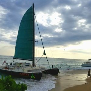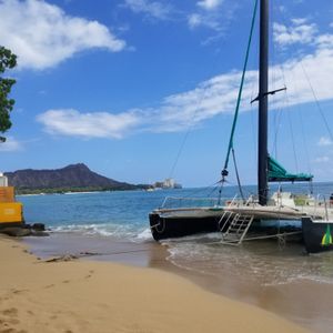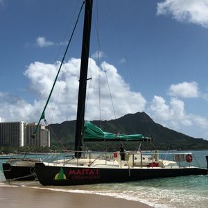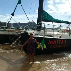 The Mai Tai Catamaran Cruise was my second experience. The departure location is on the beach between the Sheraton Waikiki and Halekulani, so it was convenient for me since I was staying at the Sheraton. The staff is cheerful, and it's a fun cruise!