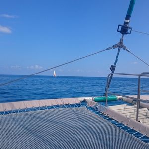天気が曇り気味だったので 少し残念でしたが、海を疾走するカタマランヨットは 気持ち良かったです。