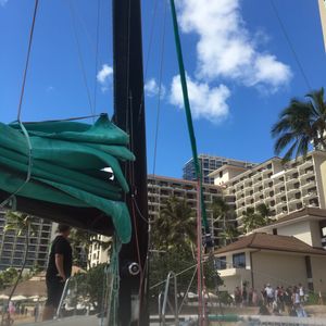 A long time ago when I visited Waikiki, I took a catamaran ride, so I requested it again this time. The boat was sturdier than before, and I think it was quite fast just with the sails. Everyone was cheerful, and it was a fun 90 minutes.