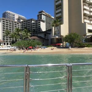 My wife and I recently moved to the island and chose this cruise as our first adventure here. The crew is great and extremely knowledgable and they make you feel comfortable on board. They took us on a solid tour up and down Waikiki beach. Amazing view and perfect weather. The bartender was awesome and made some great drinks. The prices were reasonable, especially considering what drinks cost in the Waikiki area. Buy the souvenir mug if you're looking for a deal. They can make you 16oz cocktails for the same price as the little drinks. If you're looking for a couple hours on the water and a few awesome drinks, this is the cruise for you.