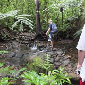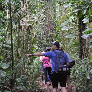 ハワイで初めてのハイキング、思っていた以上に素晴らしい体験でした。入口前に到着すると、水、スナックを貰い、虫除けを掛けたり準備します。ウエストポーチのレンタルもあります。参加者は私以外に7名の外国人。ガイドももちろん英語オンリー、英語が全く出来ないと辛いかも。ジャングル自体は、最初は楽チンですが、後半思っていたより傾斜があったり、泥濘もあり、しっかり良い汗をかきました。目的地で食べたバナナの美味しかったこと!ツアー自体は最高だったのですが、ピックアップタイム30分過ぎても迎えが来ず、さすがに電話。ガイドに直接繋がり、私への案内と何故か違う場所に行ったとのこと。10分程で迎えが来ましたが、かなり暑い最中に待っていたのでそれが辛かったです。しかし、ツアーは満足です!オススメです。