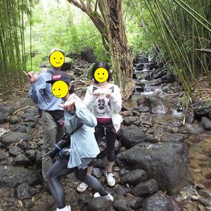 My first hike in Hawaii was an experience beyond my expectations. When I arrived at the entrance, I received water and snacks and prepared by applying insect repellent. There is also a rental option for waist pouches. There were seven other foreign participants besides me. The guide spoke only in English, so it might be tough if you don't speak any English at all. The jungle itself was easy at first, but in the second half, there were steeper inclines and muddy areas, and I definitely worked up a good sweat. The bananas we ate at the destination were delicious! The tour itself was fantastic, but I had to call after waiting over 30 minutes for the pickup. I connected directly with the guide, who mentioned that they had gone to a different location for some reason. The pickup arrived in about 10 minutes, but waiting in the heat was quite tough. However, I was satisfied with the tour! I highly recommend it.