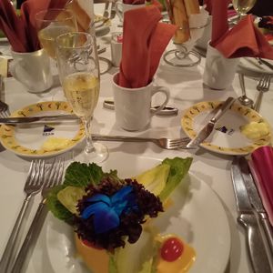 Crew, entertainment & cruise were superb! Food was good- crab was really good, steak good, but chicken dry. Could use more veggies.