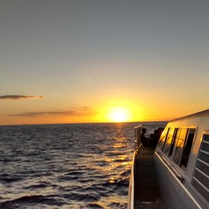 ボートが沖に出て少しするとクジラの親子に遭遇出来ました!肉眼でクジラの潮吹きや海面の上に出てきた尾びれを見られてものすごく興奮しました!夕方のツアーなので時間的にイルカは見られませんでしたがクジラに遭遇出来たので大満足でした。
