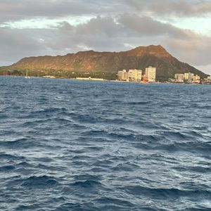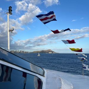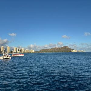 I participated with four friends. We were the only Japanese people there, but with some drinks and interactions with people from other countries, it became a very enjoyable memory. The view of Waikiki from the ocean was a bit cloudy, but the sunset from the ocean side was really beautiful and definitely worth experiencing!