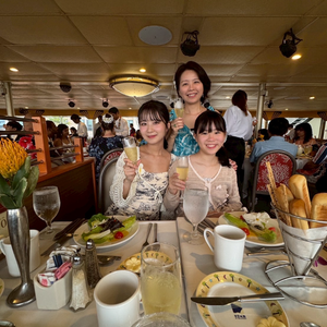 It was a fun dinner cruise. Before sunset, a rainbow appeared, and the scenery was very beautiful. Since we had children, we opted for a buffet-style meal instead of a course meal, which was great. Everyone got excited with the dancing, and it turned out to be a very enjoyable cruise, creating wonderful memories for the whole family.