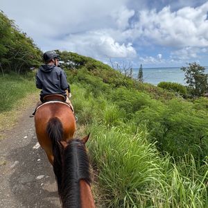Upon arriving at Kualoa Ranch, we were guided on where to wait inside the bus. They also spoke in Japanese. On that day, there were Japanese staff members present at the facility, and they gathered only the Japanese guests to provide detailed explanations about the locations of the restrooms and lockers. The scenery while riding the horses was breathtaking and became a wonderful memory.