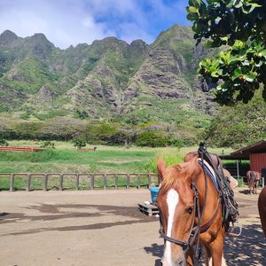 The horses have names inspired by Hawaii. The horse that my family rode was named Aloha.