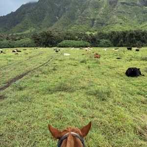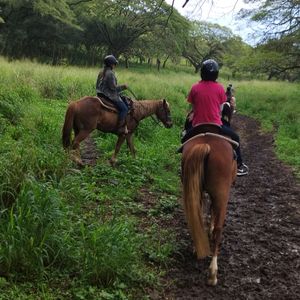 We went horseback riding as a family of three. It was our first time riding in Hawaii, and I was a bit nervous at first, but the local guide was very friendly and kind. We even found some unexpected common interests and hit it off, becoming friends. The long hours of horseback riding were very valuable, as it's not something we can experience much in Japan, so it was a really great experience and we had a lot of fun!