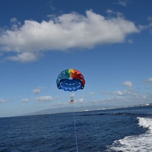 パラセーリングはもちろん、船が波で跳ねるのもスリリングで楽しかったです。