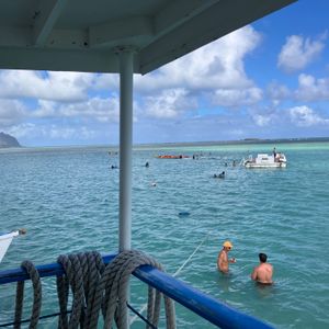 My family has been in Hawaii for a week, and one of the last things we had to do was take a boat tour to Kaneohe sandbar. It came very highly recommended to us, so I found this tour and booked it! Mannnnn, this was THE SINGLE BEST thing we did all week. The boat crew was amazing. Captain Calvin was stellar, along with the whole entire crew. We were so impressed with how much fun we had! The weather was perfect for snorkeling, the kids had the best time being whipped around the ocean on the banana boat, the food was good, the music was amazing! Everything was just perfect. I didn’t want to get off the boat. Cannot lie, the Hawaiian people are the best people. Their kindness is unmatched. We had a great time. Thank you to everyone who made our boating experience amazing.
