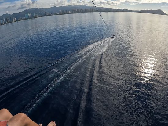 I went parasailing for the first time. It was fun. I boarded with six groups of people and took turns parasailing. Since it was a small boat, it rocked quite a bit, but if you think of it as cruising, the scenery was amazing. Thank you very much.
