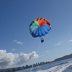 I took motion sickness medication based on other people's reviews and participated. At first, the speed of the boat was quite fast, and it felt like I was on a roller coaster, so I wasn't worried about getting seasick. The parasailing was at a high altitude, but I didn't feel scared at all, and I could see many tall buildings, which was very pleasant. My elderly mother had no issues and said she would like to participate again. A foreign couple in their 70s who were on the same boat mentioned it was their third time, so it seems there are many repeat customers!