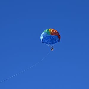 The colors of the parachutes are vibrant, making them stand out beautifully.