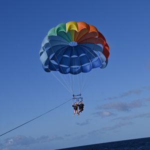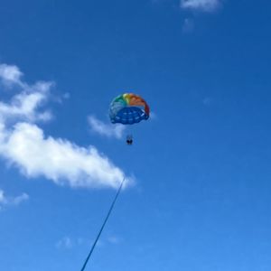 私の場合、薬を飲んでも船酔いしてしまいましたが(多分服用が遅く効いてなかった)、パラセーリング中に強風で揺られ、更に酔ってしまいました。(空上でも酔うとは想定外)‥最悪、吐いてしまった場合の対応もちゃんとしてもらえます。体験中は、船上に明るい音楽が流れ、陽気なお兄さんたちが場を盛り上げてくれます。色んな国から参加者が集まりますが、他の人が体験中に船から手を振ってみたり、周りと会話が弾んだり、パラセーリング以外にも得られる思い出があります。一度、体験してみてほしいです!!