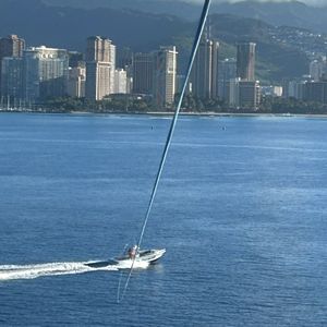 My husband and our two daughters flew, while I joined as an observer on the boat. The beautiful scenery, including the blue sky and ocean and the Diamond Head, while feeling the wind from the boat was amazing. It was great to experience the excitement of taking off and to be able to take photos.