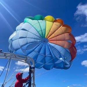 First of all, I want to mention that depending on your physical condition that day, if you tend to get seasick or are unsure if you do, I recommend taking motion sickness medication just in case. In my case, even after taking the medication (I probably took it too late for it to be effective), I still got seasick due to the strong winds while parasailing. (I didn't expect to get seasick even in the air)... They also have proper measures in place in case you end up vomiting. During the experience, cheerful music plays on the boat, and lively staff members help create a fun atmosphere. Participants from various countries gather, and while others are experiencing the activity, you can wave from the boat or engage in conversations, creating memories beyond just parasailing. I really hope you give it a try!