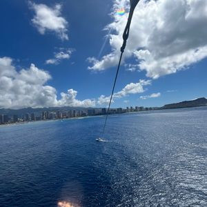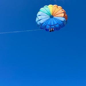 My first parasailing experience! I forgot that I get seasick and decided to give it a try... and off I went into the sky! It was stable up there, so it wasn't scary at all, and the view was breathtaking. I recommend taking motion sickness medication for those who get seasick. It was a wonderful experience.