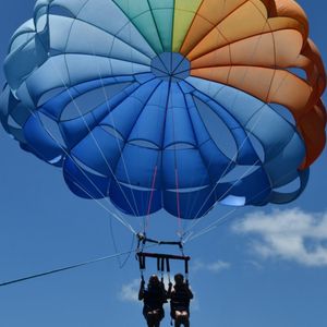 初パラセイル。全く英語が分からない親子で参加。受付のスタッフさんは少し日本が分かる方でしたが、ボートのスタッフさん2名は英語のみ。私たちを含めて5組(2組は外国人、3組は日本人)で出発。スタッフさんの決めた順番で1組ずつ飛びました。途中、お一人の方が船酔いで海に◯いていたので、乗り物酔いされる方は対策が必要かと思います。パラセイルする際は、サングラスと首からスマホをかけたままでOKでした(自己責任で)。降りる時は足が膝くらいまで水に着いたタイミングでもう一度少し飛ばして(浮かせて)くれて、最終的にはボートの上に降ろしてもらえたのでほとんど水にぬれませんでした。スタッフさんの話(英語)は全く分かりませんでしたが、楽しい雰囲気は伝わってきましたし、実際にとても楽しめました!受付から解散まで約1時間半で、ヒルトンの近くという場所を考えると気軽に体験できるアクティビティだと思います。