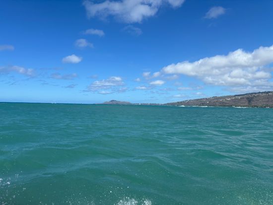 The weather was nice, and the view of the sea, sky, and Diamond Head was amazing. The boat rocked quite a bit, but I enjoyed it as if I were cruising. I recommend the 150-meter option, as it lasts significantly longer.
