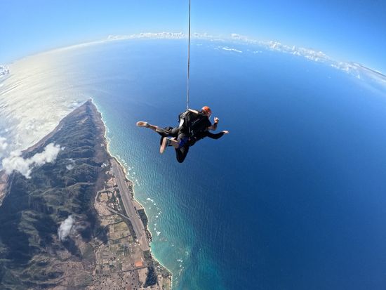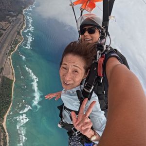 This was my first experience with skydiving, and I was truly moved by the breathtaking 360-degree views of the ocean, mountains, and sky on the North Shore. My father, who is in his late 60s, was initially hesitant to participate, but afterward he smiled and said, "It was amazing," which made me really happy. I'm glad we opted for the video footage as well; my mother and wife, who didn't participate, were very pleased with it.