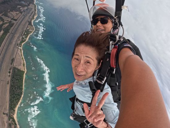 今回がスカイダイビング初体験でしたが、ノースショアの海、山、空が織りなす360度最高の景色に、心から感動しました。