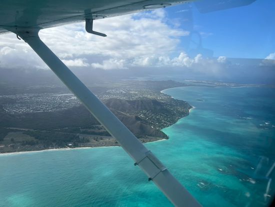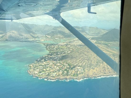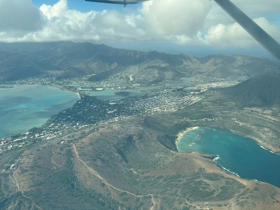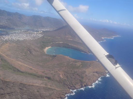 We flew carefully over the East Coast from above Waikiki (the pilot circled around the area because there were reports of whales).