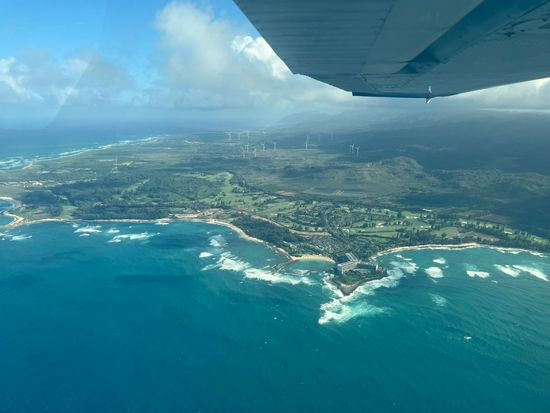 ワイキキ上空から東海岸(クジラがいたとのことでパイロットの方が周辺をぐるっと旋回していただけました)を丹念に飛行していただきました。