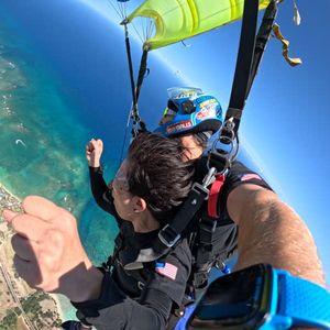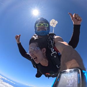 Skydiving, something I wanted to try since I was a child! Finally, in my 50s, I was able to experience it! It was an absolutely amazing experience. I couldn't speak English at all, but all the staff were kind, and there were Japanese staff members as well, so I was able to fly safely and enjoyably♪ THANK YOU SO MUCH!! From now on, I want to challenge myself to do solo dives!
