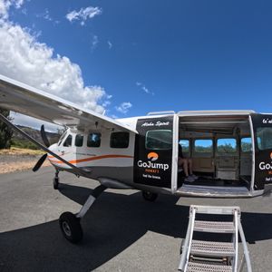 After we were called, the instructor gave us a brief explanation and helped us put on the equipment. Then, we filmed a video in front of the Gojump flag before boarding the jet. The jet can hold about 16 people, so it feels cramped. Since the jet runs backward, those who get motion sickness might feel uneasy. It ascends to a considerable height in just a few minutes. They opened the window along the way to show us the view, which was amazing but a bit cold. Long sleeves and long pants might be better.