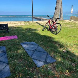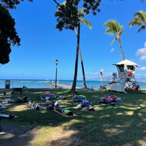 ハワイでビーチヨガができること、大変楽しみにしていました!初心者にも優しい難易度、常連の方やチャレンジしたい方は難易度を上げるポーズを選択ができます。日本人の先生が英語でのポーズの説明、その後に日本語で補足をしてくださいました。芝生の上で感じる足元の不安定さ、石や砂の感触、雨の冷たさ、風の心地よさ、波の音水しぶきまで、目を閉じるのが勿体無いくらい。とても楽しかったです。いい経験ができました。