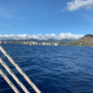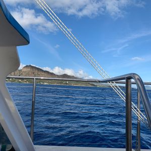 The weather was a bit unpredictable with rain coming and going, but the conditions on the day turned out to be quite good. The contrast of the rainbow with the planes taking off from Honolulu Airport and the view of Diamond Head and the streets of Waikiki from the sea was very uplifting. The open sea had surprisingly high waves, and everything from my clothes to my belongings got soaked, but the pleasant climate made it feel like being sprayed with water at Disneyland. Unfortunately, we didn't see any whales, but we received a pass to ride again for free within the season, so I felt quite satisfied. A couple in their 50s who could only speak basic English like "Thank you" somehow joined a tour that only had an English-speaking guide (there were about 20 participants, and only one other Japanese group besides us), but even without understanding the language, we had a pretty good time. Just keep in mind that there are no life jackets, so any activities outside the boat are at your own risk.
