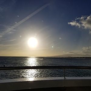 サンセット、ホノルルの夜景、とても素敵です。フラダンスや色々なダンス、船内のみんなで盛り上がりました。