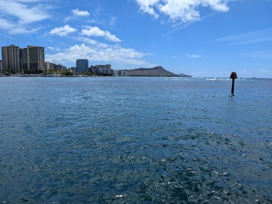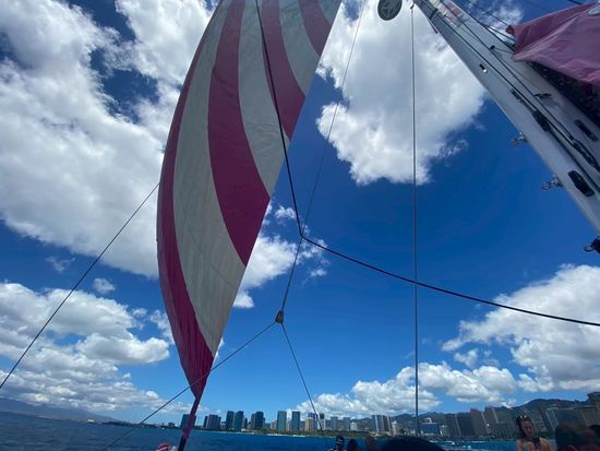 また、船上からはワイキキの街並みやダイヤモンドヘッド、サーフィンを楽しんでいる人々など、ザ・ハワイといった景観も充分見ることができ、ちょっとしたクルージングも兼ねてとても楽しめました。