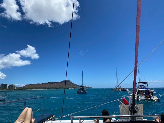 シュノーケリング後は、ダイヤモンドヘッドの方までクルージング。風も気持ちよく、参加してよかったです!