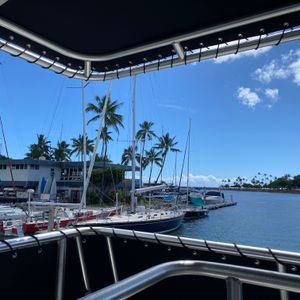 We participated in a trip to Hawaii as a couple. We traveled by boat from Hilton Hawaiian Village to the submarine waiting area. The sea breeze was pleasant, and we enjoyed the scenery.
