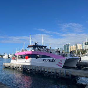 On the day of the reservation, there were quite a few passengers, even standing room only. As we set sail, the waves grew higher, which was exciting! I had a great time laughing with other customers. We were supposed to see Diamond Head, but before we knew it, we made a U-turn?? I thought the swaying of the boat was part of the captain's technique to entertain us, but... due to bad weather, it ended abruptly after about an hour. All the announcements were in English, so it would be nice if announcements in other languages could be provided as well. I think it's great that if you miss out, you can either reboard or get a refund.