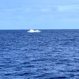 After a while, the captain announced over the intercom, "There are whales at the direction of ◯ o'clock (in English)," and everyone hurriedly pointed their cameras to look. Fortunately, we encountered a mother and calf whale. It was a bit disappointing that we only saw them spouting and didn't get to see any larger behaviors, but just being able to encounter them was great. I captured it all on video.