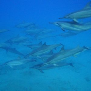 The tour took place in Hawaii under unusually low and rough weather conditions. Right after departure, many people started feeling seasick, but it turned out to be a lucky day, as we encountered a large pod of dolphins that swam leisurely beside us and even surfaced, which the crew described as a miracle. During snorkeling after the dolphins, we also had the rare chance to see a ray.