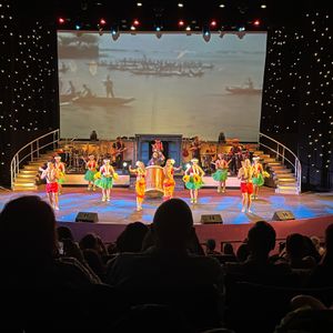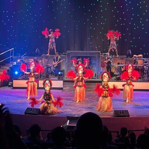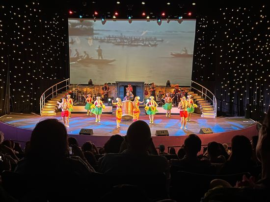 ステージではフラやタヒチアンダンスも見れたしエルビスプレスリーとマイケルジャクソンがすごーく似てたし曲やダンスも懐かしいし時差ぼけで眠かったにも関わらず最高のパフォーマンスを見せていただきました。